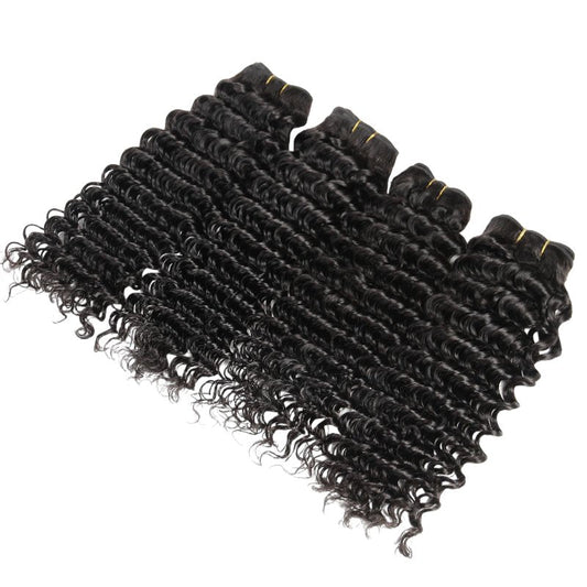 Wkm Hair Tissage en lot Deep Wave brésilien 100% naturel, couleur naturelle, lot de 4