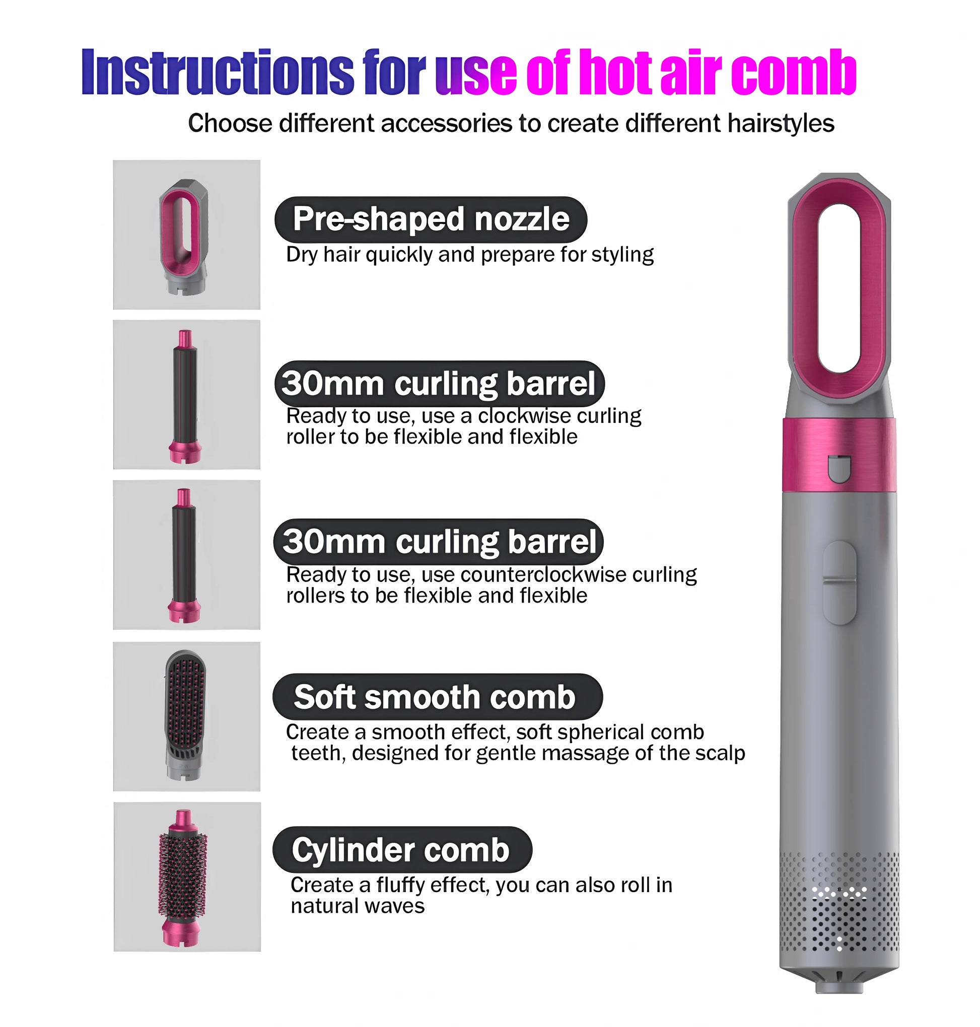 5-in-1 Hair Dryer Hot Air Comb: Versatile styling tool.